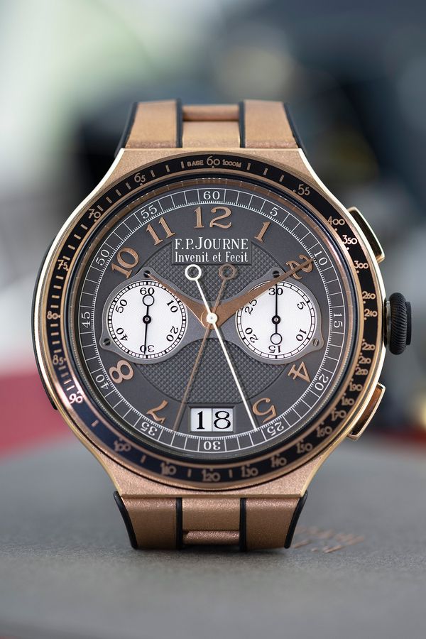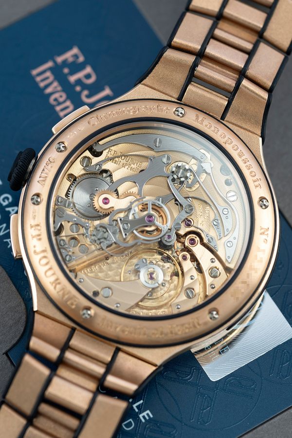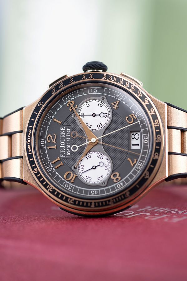 A 2022 F.P. Journe LineSport Rattrapante in 18k pink gold, available for immediate purchase from Phillips PERPETUAL. Price: £95,000