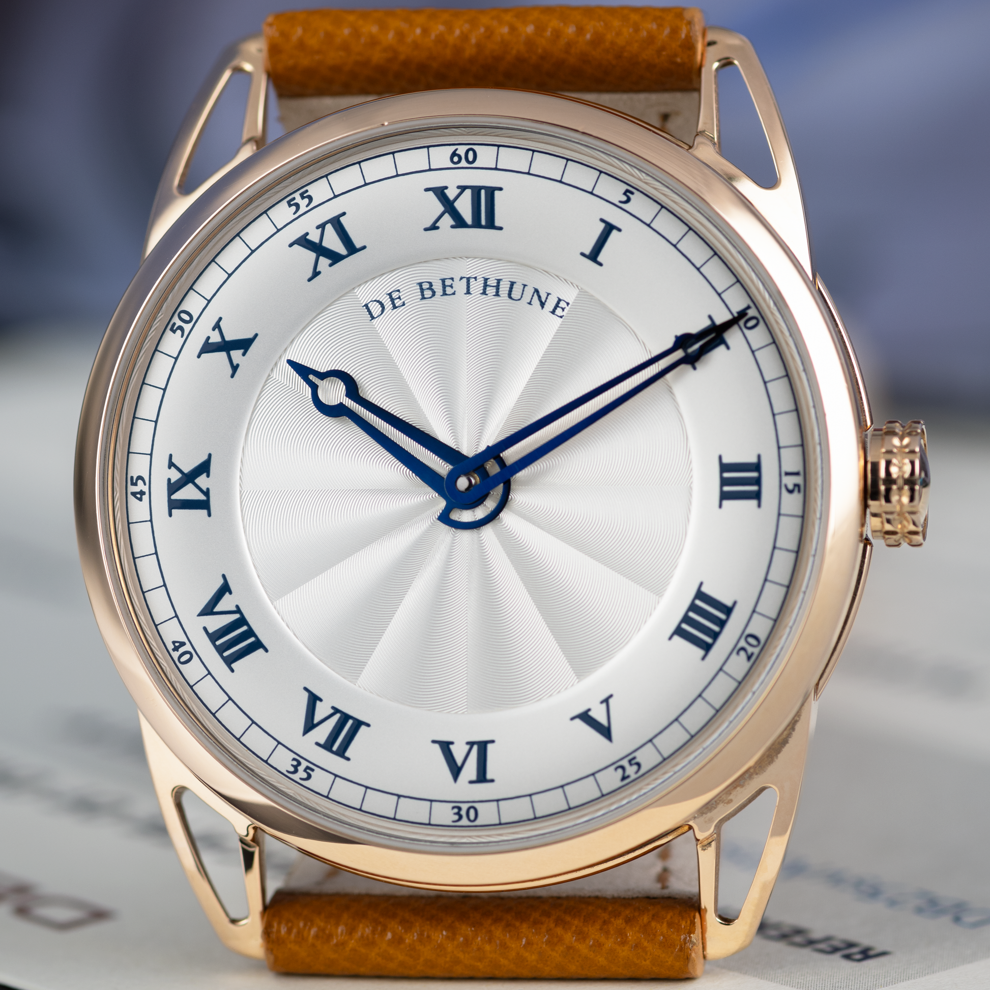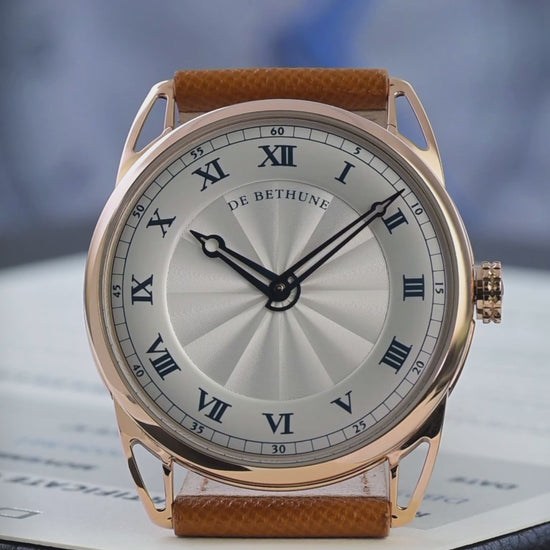 A brand that is known for its futuristic and often complicated watches, this De Bethune DB25 in Rose Gold is watch that is both classic and pared back compared to the watches we usually associate with the brand. With an elegant round rose gold case and Roman numerals with those famous DB blued hands, the DB25 is sophisticated and elegant. The hollowed lugs add a sprinkling of the avant-garde that De Bethune is known for. Coming to us in superb condition, this DB25 in Rose Gold comes with its full suite of accessories and strikes the balance between classic and futuristic perfectly.