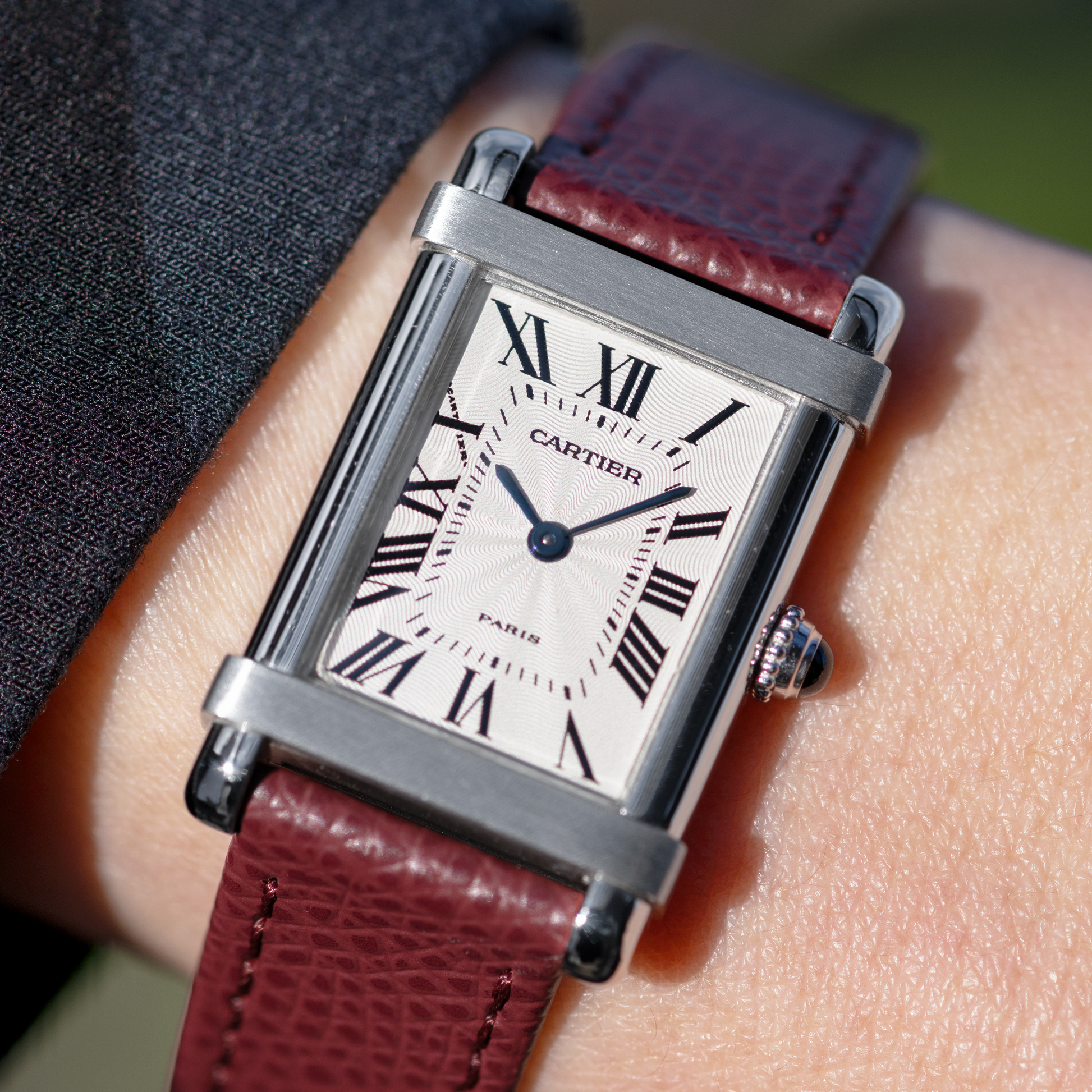 This Cartier Tank Chinoise in platinum with a “Paris”-signed dial from circa 1996 features the original square-adjacent aesthetic that the brand is famous for. Predating the official start of the CPCP (Cartier’s Collection Privé Cartier Paris) series, this Chinoise retains a very strong neo-vintage feeling.